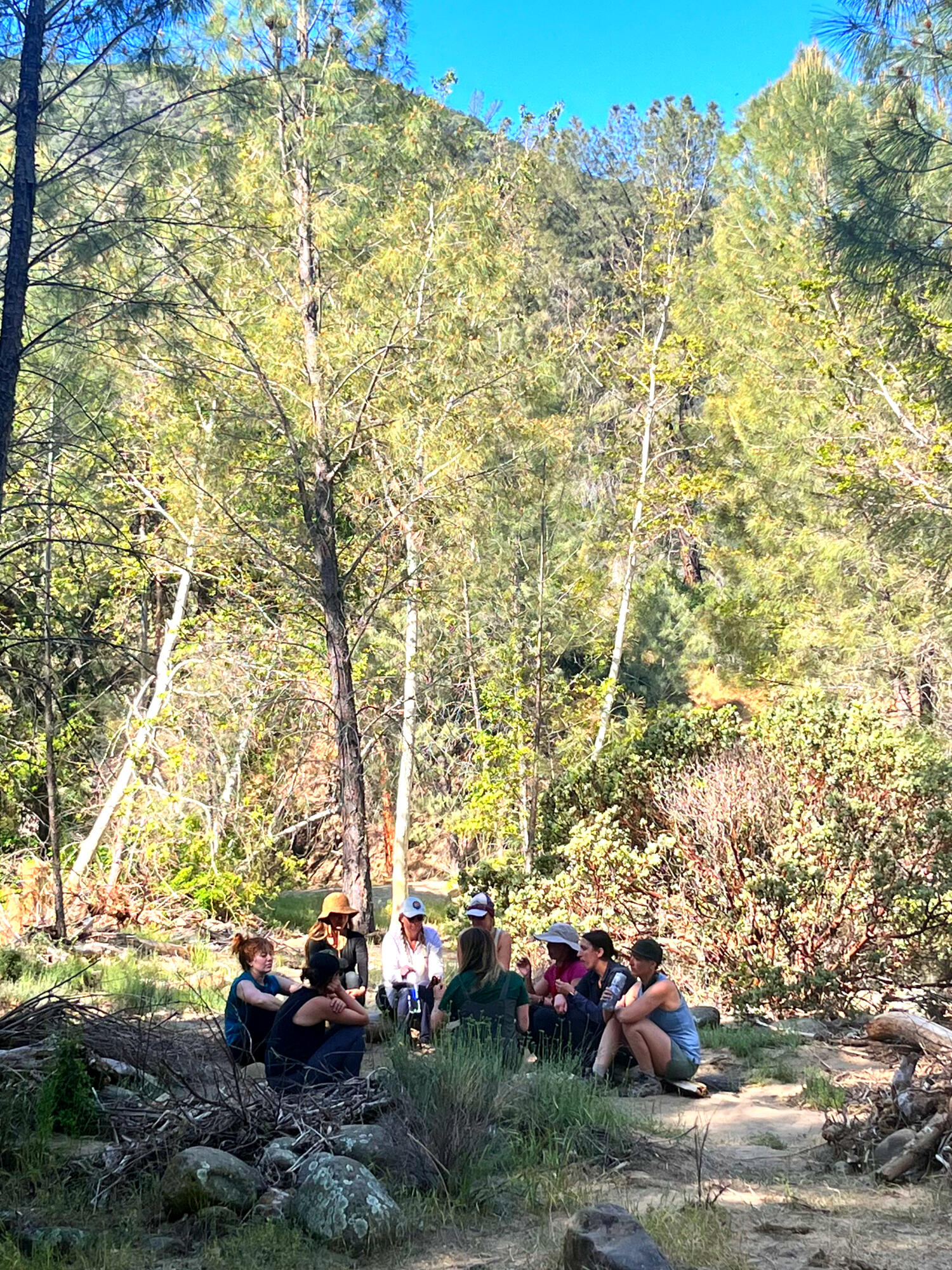 • How physically demanding is the retreat? Is this beginner-friendly?Yes. Many women who join us are first-time backpackers. The hike includes some hills and uneven terrain, but it’s very manageable for most people. We hike approximately 2–4 miles each way with packs, move at a steady, supportive pace, and take seated breaks along the way. You don’t need to be an athlete — just reasonably comfortable walking a few miles. Comfort, safety, and care are prioritized throughout the weekend.• What gear do I need?You’ll receive a detailed packing list after registration so you know exactly what to bring. Some gear is available to borrow if needed, including backpacks, sleeping pads, and tents. If you’re unsure about gear or want help figuring out what you already have, just reach out — we’re happy to support you.• What do the activities include?The weekend includes hiking, setting up camp together, shared meals prepared by the facilitators, time by the river, group circles, and spacious solo time. We offer gentle mindfulness and grounding practices, with everything always optional. You’re invited to participate in ways that feel right for you.• What's the group size?We keep the group intentionally small, capped at 12 women. This allows for a more personal, connected experience and plenty of individual support.• Is this therapy?Nope. This is a retreat, not therapy. While the experience is thoughtfully facilitated and emotionally supportive, there is no fixing, diagnosing, or processing required. The focus is on time in nature, connection, and allowing insight to arise naturally.• What happens if the weather changes?We monitor weather closely and plan thoughtfully. If conditions require adjustments, we’ll communicate clearly and make changes that prioritize safety and comfort. If conditions are unsafe, we’ll connect with the group to discuss next steps together.