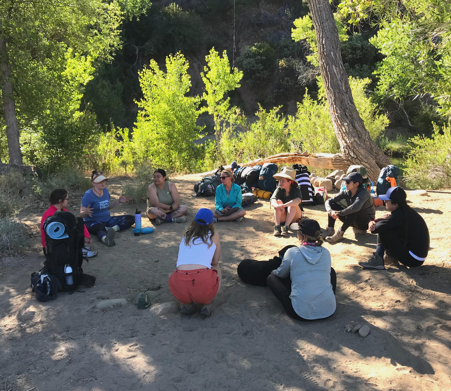 • How physically demanding is the retreat? Is this beginner-friendly?Yes. Many women who join us are first-time backpackers. The hike includes some hills and uneven terrain, but it’s very manageable for most people. We hike approximately 2–4 miles each way with packs, move at a steady, supportive pace, and take seated breaks along the way. You don’t need to be an athlete — just reasonably comfortable walking a few miles. Comfort, safety, and care are prioritized throughout the weekend.• What gear do I need?You’ll receive a detailed packing list after registration so you know exactly what to bring. Some gear is available to borrow if needed, including backpacks, sleeping pads, and tents. If you’re unsure about gear or want help figuring out what you already have, just reach out — we’re happy to support you.• What do the activities include?The weekend includes hiking, setting up camp together, shared meals prepared by the facilitators, time by the river, group circles, and spacious solo time. We offer gentle mindfulness and grounding practices, with everything always optional. You’re invited to participate in ways that feel right for you.• What's the group size?We keep the group intentionally small, capped at 12 women. This allows for a more personal, connected experience and plenty of individual support.• Is this therapy?Nope. This is a retreat, not therapy. While the experience is thoughtfully facilitated and emotionally supportive, there is no fixing, diagnosing, or processing required. The focus is on time in nature, connection, and allowing insight to arise naturally.• What happens if the weather changes?We monitor weather closely and plan thoughtfully. If conditions require adjustments, we’ll communicate clearly and make changes that prioritize safety and comfort. If conditions are unsafe, we’ll connect with the group to discuss next steps together.